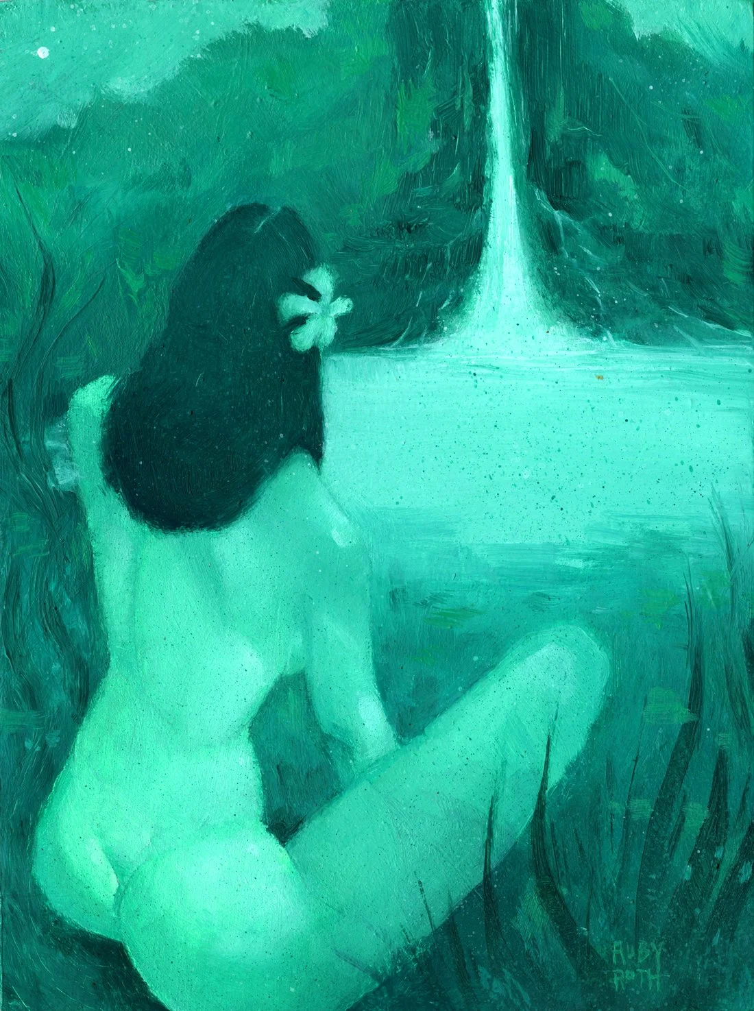 View fullsize  SOLD | Wahine, Waterfall | 12 x 6 inches | Oil on Panel