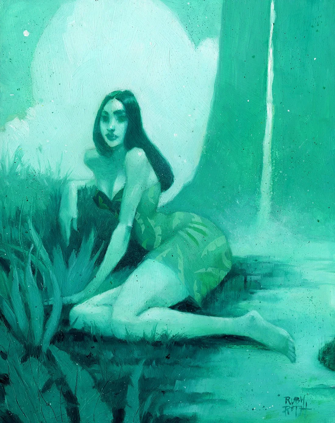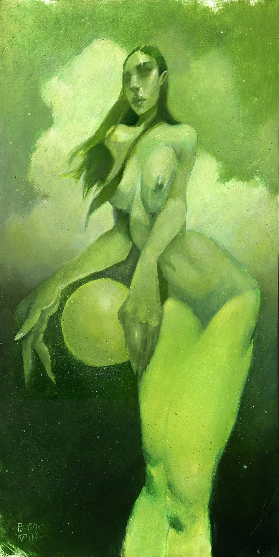 View fullsize  Wahine, Resting (Green) | 28 × 24 inches | Oil on Panel | $3200 Framed