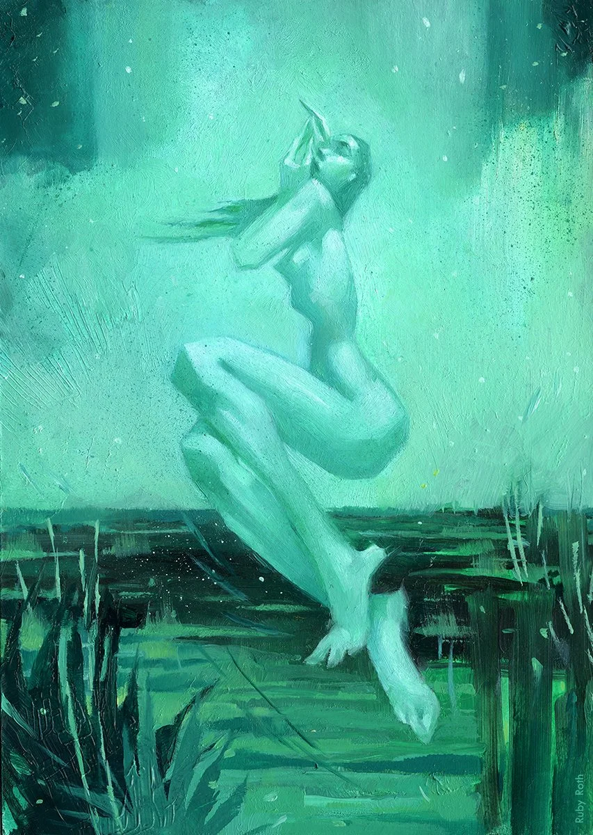 View fullsize  Wahine, Pond | 4 x 6 inches | Oil on Panel | $500 Framed