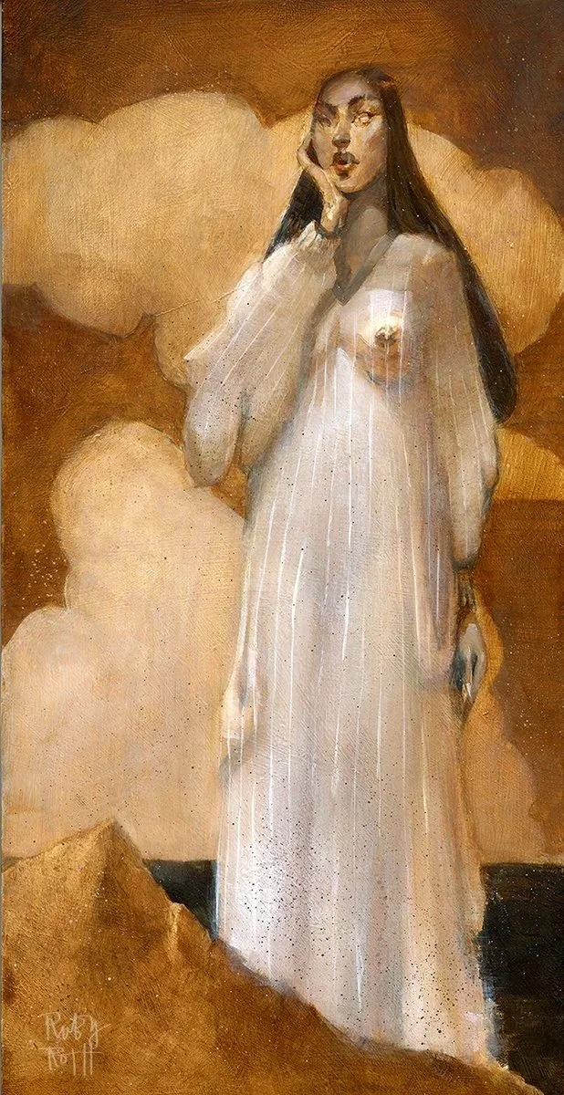 View fullsize  Wahine, Mountains | 5 × 7 inches in an 8 × 10” mat | Acrylic on Paper | $250 (Cellophane Sleeve)